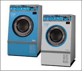 ●洗濯方式/回転ドラム式●洗濯容量/32kg 乾燥容量/22kg●外形寸法/W1,070×H1,830×D1,437(mm)●ドラム寸法/直径840×奥行565(mm)●電源/3相200V 50/60Hz●重量/1100kg●使用可能硬貨/五百円・百円